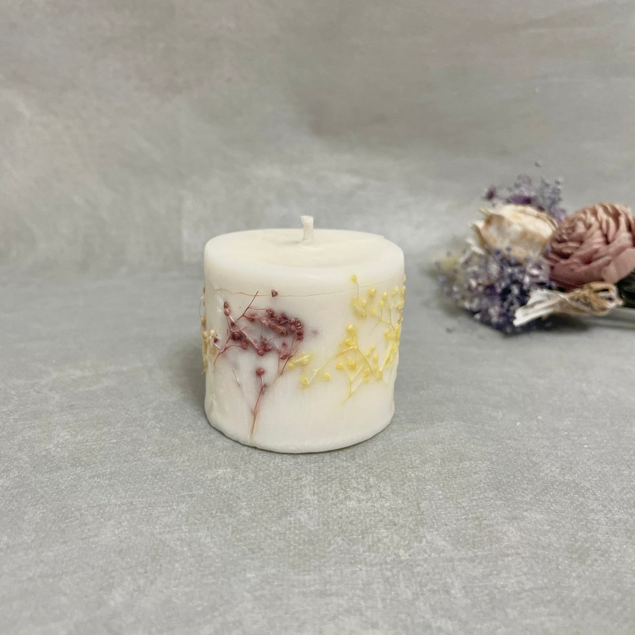 100%ソイワックスを使用したドライフラワー入りアロマキャンドルです。