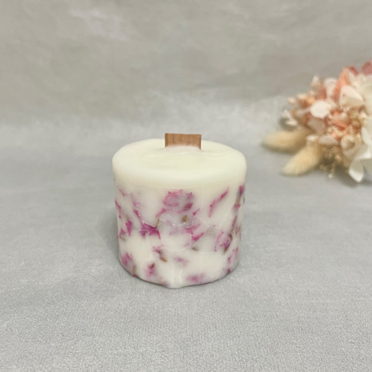 100%ソイワックスを使用したドライフラワー入りアロマキャンドルです。