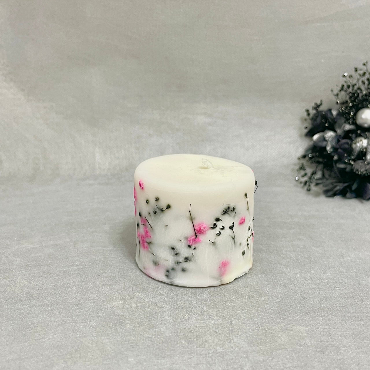 100%ソイワックスを使用したドライフラワー入りアロマキャンドルです。