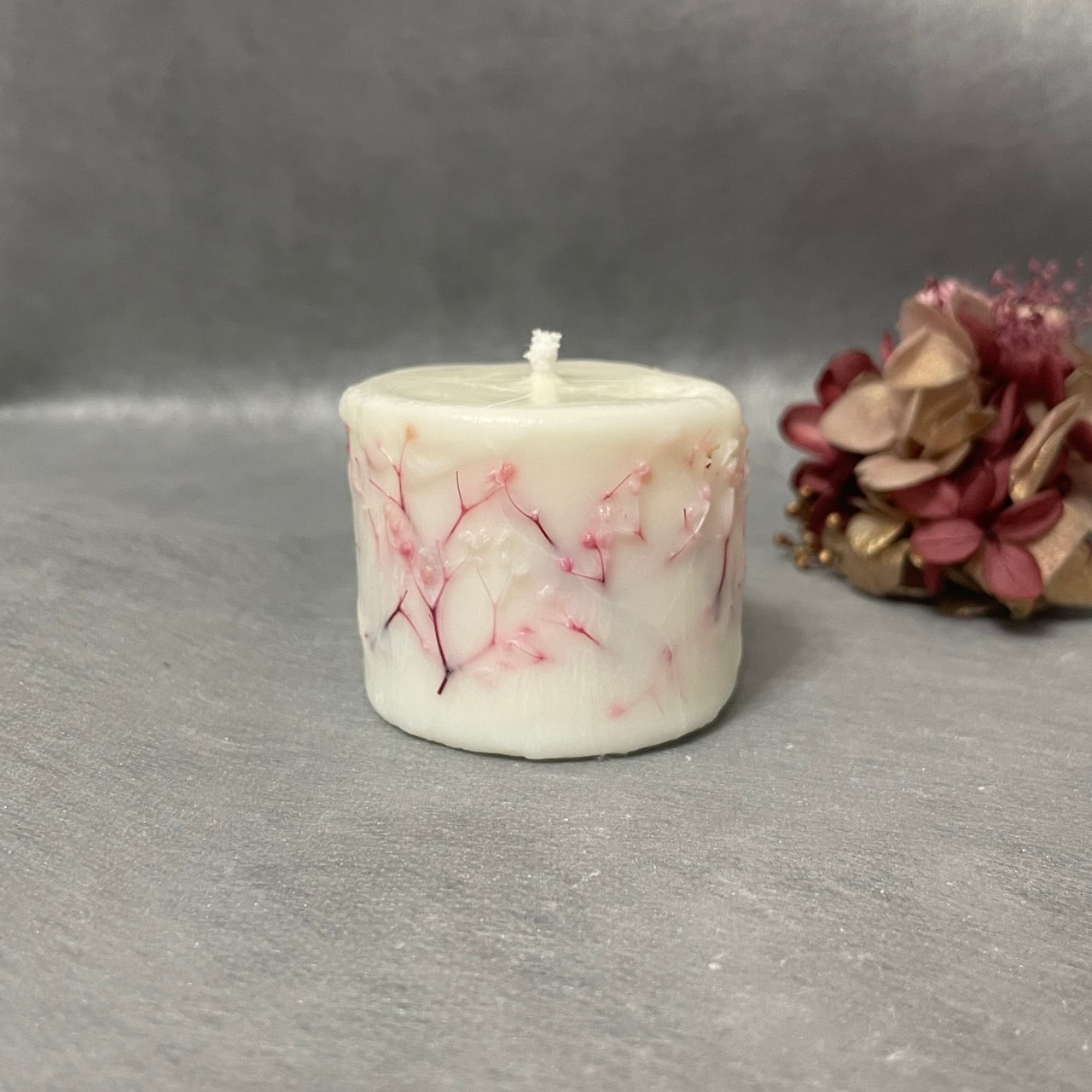 100%ソイワックスを使用したドライフラワー入りアロマキャンドルです。